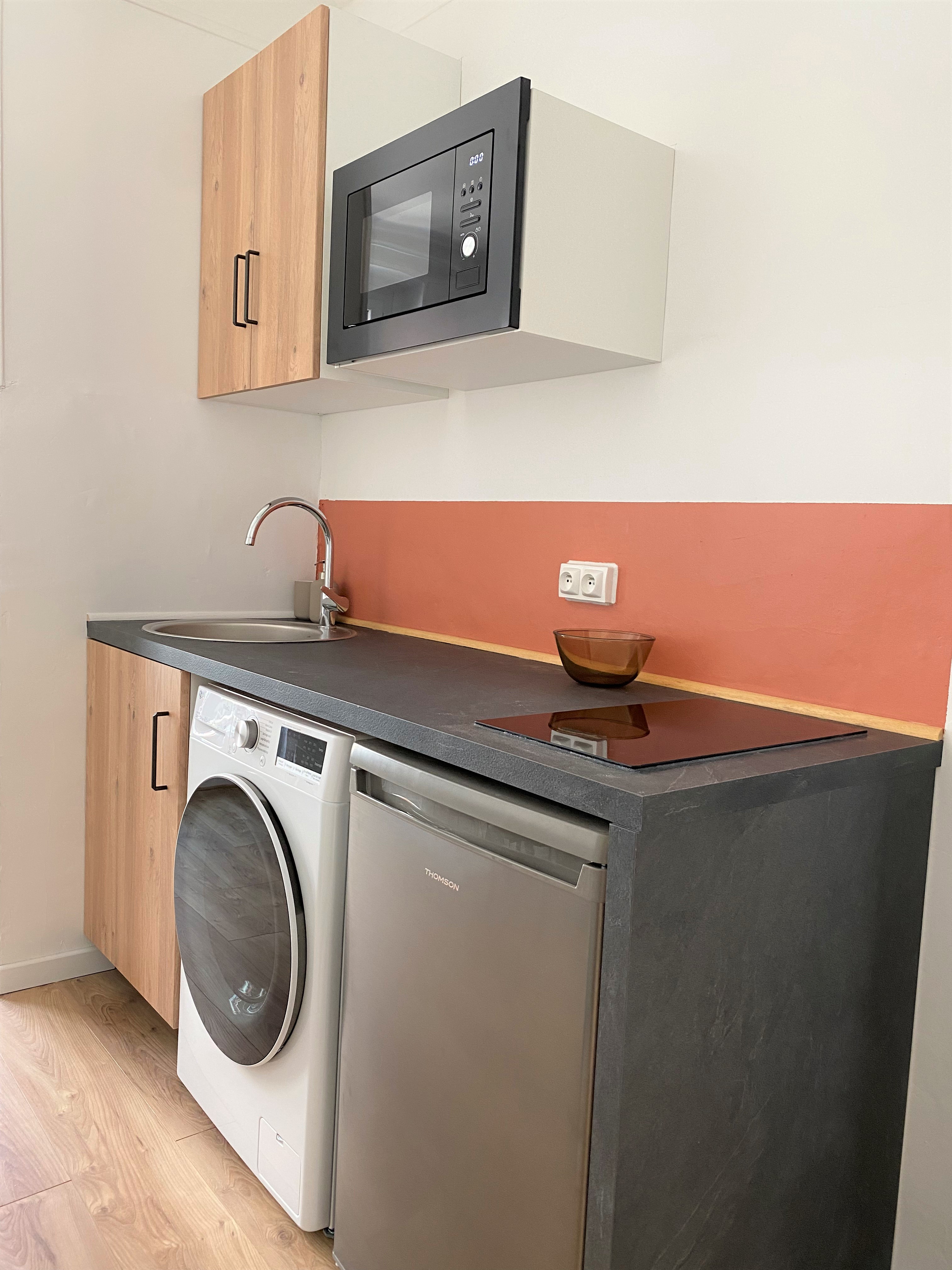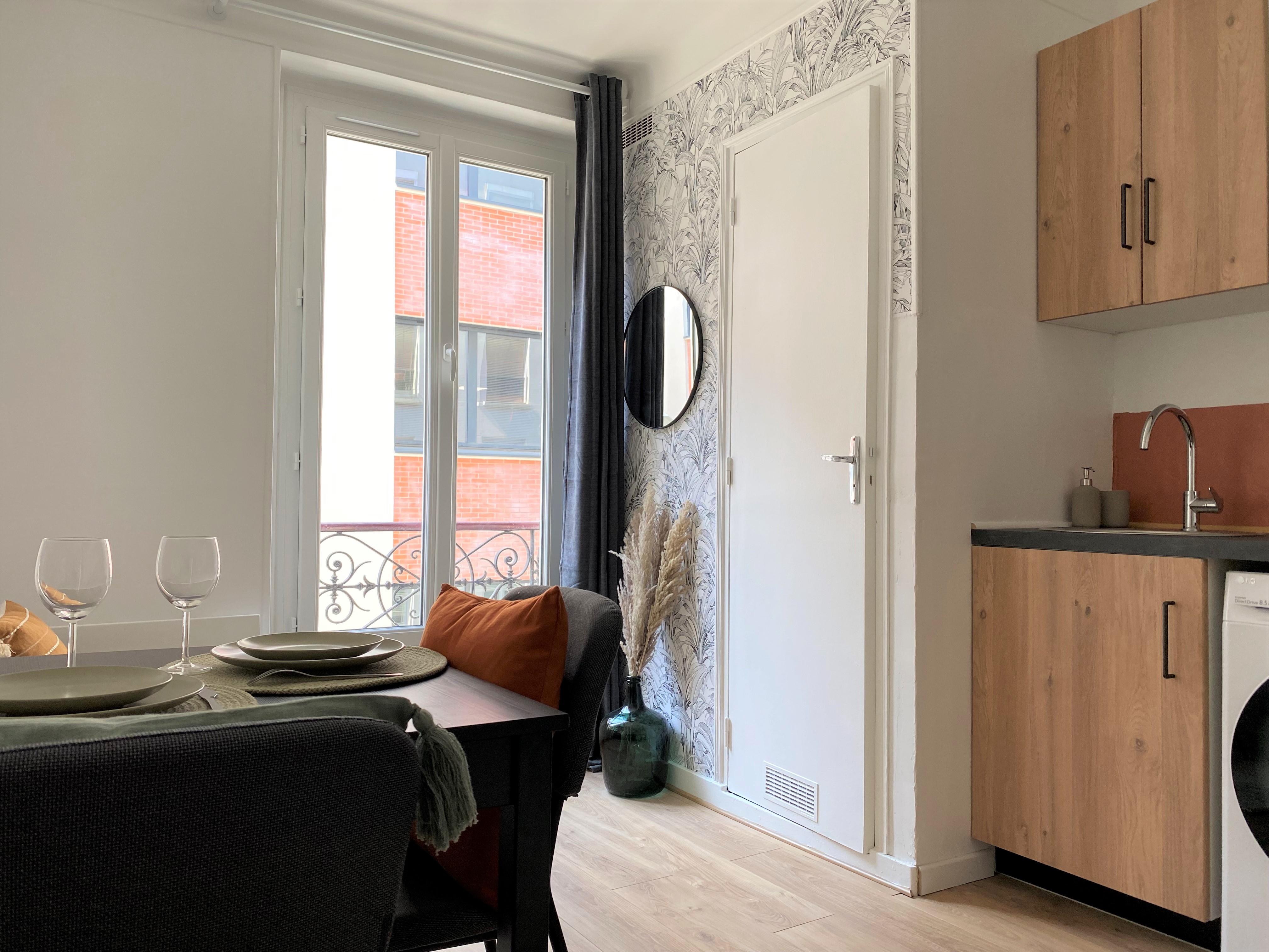 Designed for long stays, it features a fully equipped kitchen, a washing/drying machine, and custom-built storage closets to keep your space organized. With its proximity to public transport and key areas of the city, the Studio Belfort is an excellent choice for work or study in Paris.