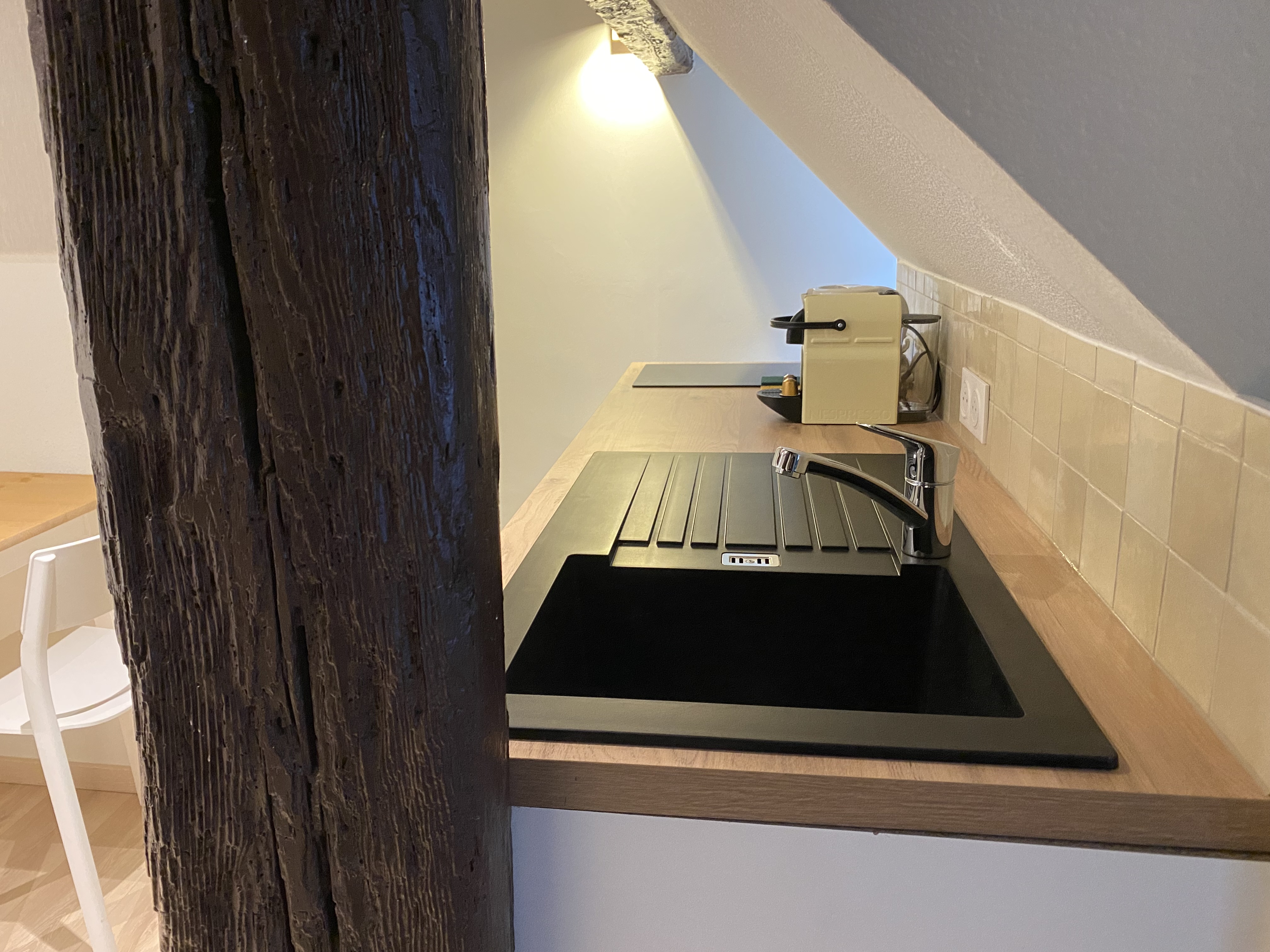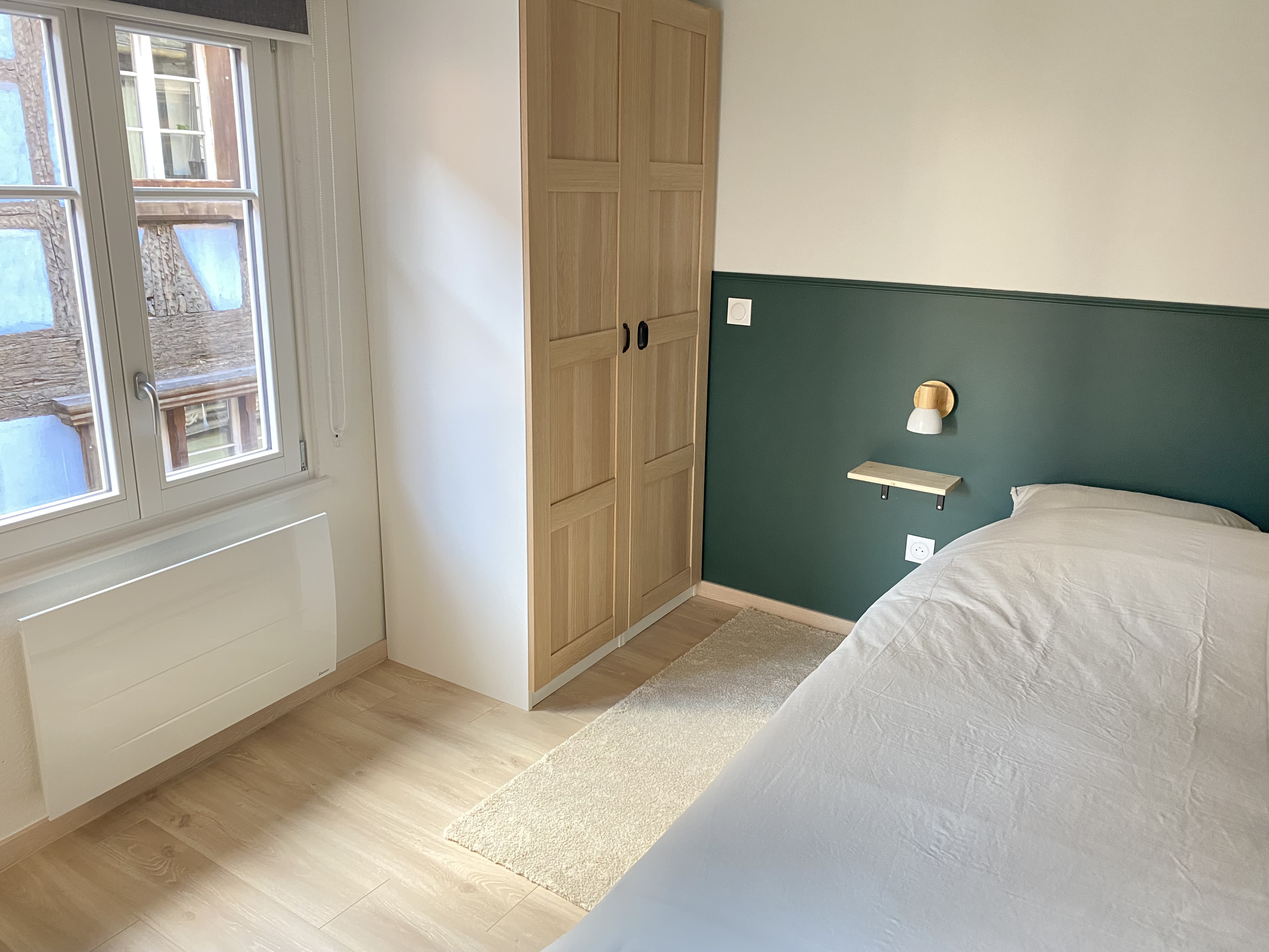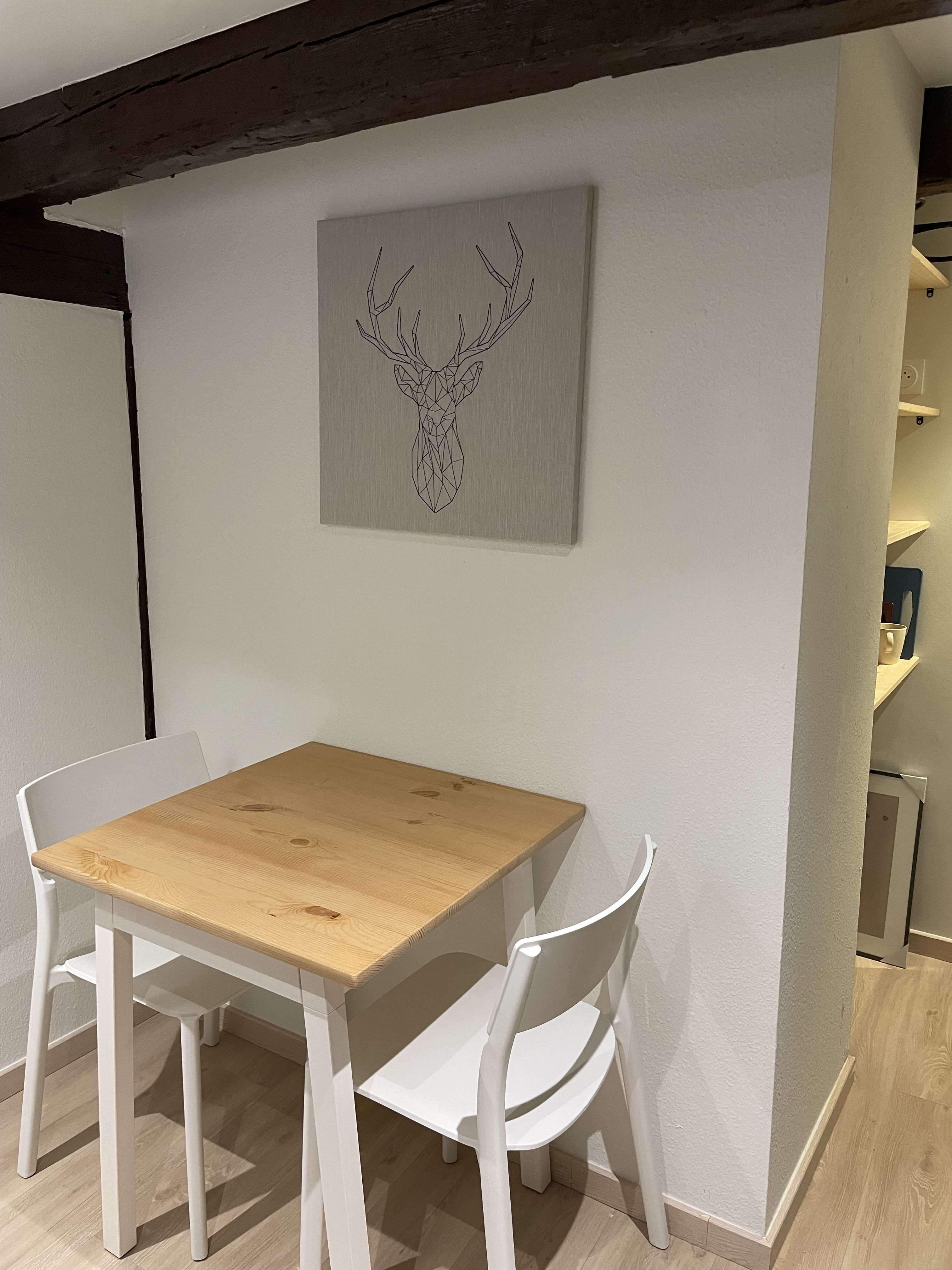The Studio Helene is a beautifully designed 25m² (270 sq ft) apartment located in the heart of Strasbourg in a very old building, offering an exceptional location in the city. This elegant space features a cozy bedroom with a Queen-size bed (160 cm wide) and a large 50-inch TV, a fully equipped separate kitchen, and a modern bathroom with a walk-in shower. For your convenience, the apartment also includes a washer-dryer.
